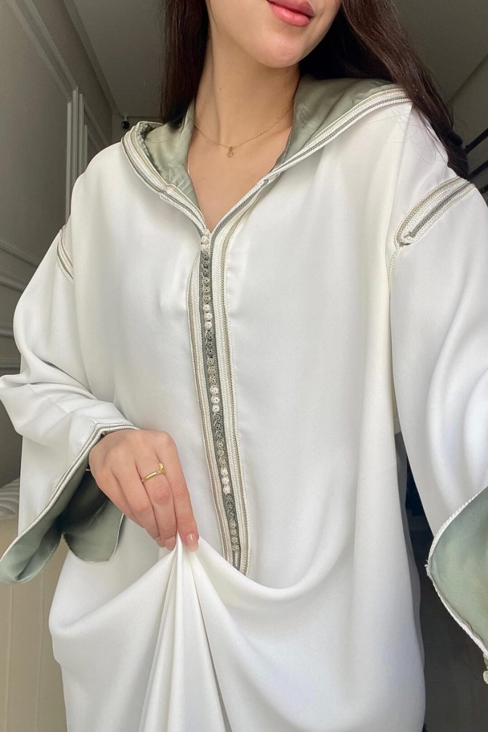 The Marrakech Mocha Elegance captures the soul of Morocco with its warm coffee-inspired tones and flowing silhouette. Meticulously tailored from luxurious crepe and adorned with intricate zwak maalem hand embroidery